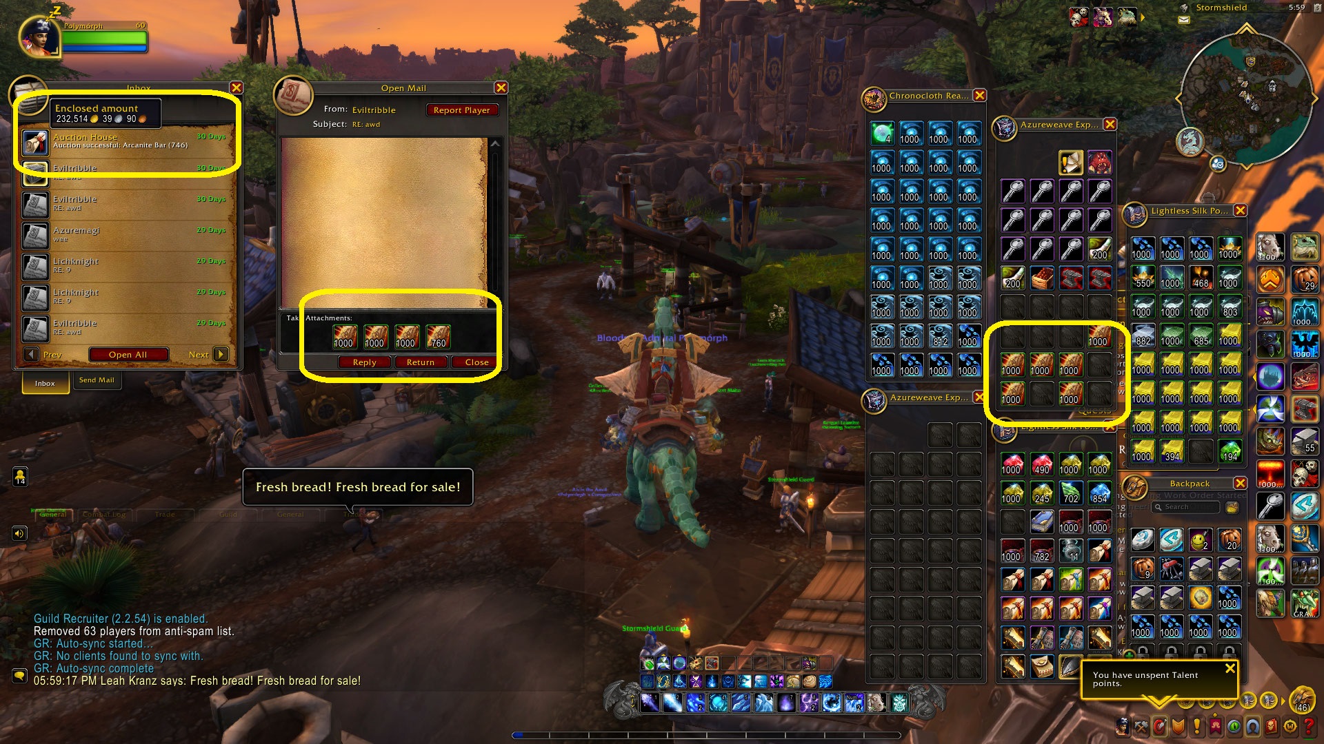 Once you get 300/300 Vanilla Alchemy and the Transmute specialty you can immediately buy the recipe ( On the Auction House) for Arcanite Bars. The Arcanite bars I sell made me the 200,000 gold I made in one hour of sales in the TOP screen shot.