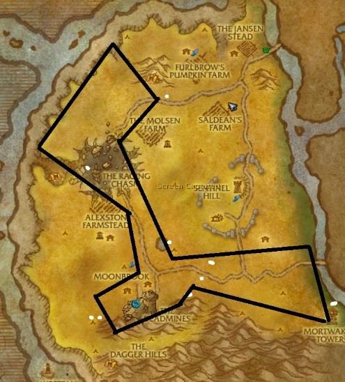At level 5 you can learn herbing in stormwind as I showed you. Head outside stormwind and follow the map path below doing quests as you level up your herbing. Once you picked the first 60 or 70 Peacebloom and Silverleaf you can use those to begin your training in alchemy. As you complete the herbing in each circle of the map be sure to take a big drink. Enjoy the wonderful scenery and do the quests. But take time to have a beer or 3. Connect with your fellow players and enjoy it as you get closer to being rich.