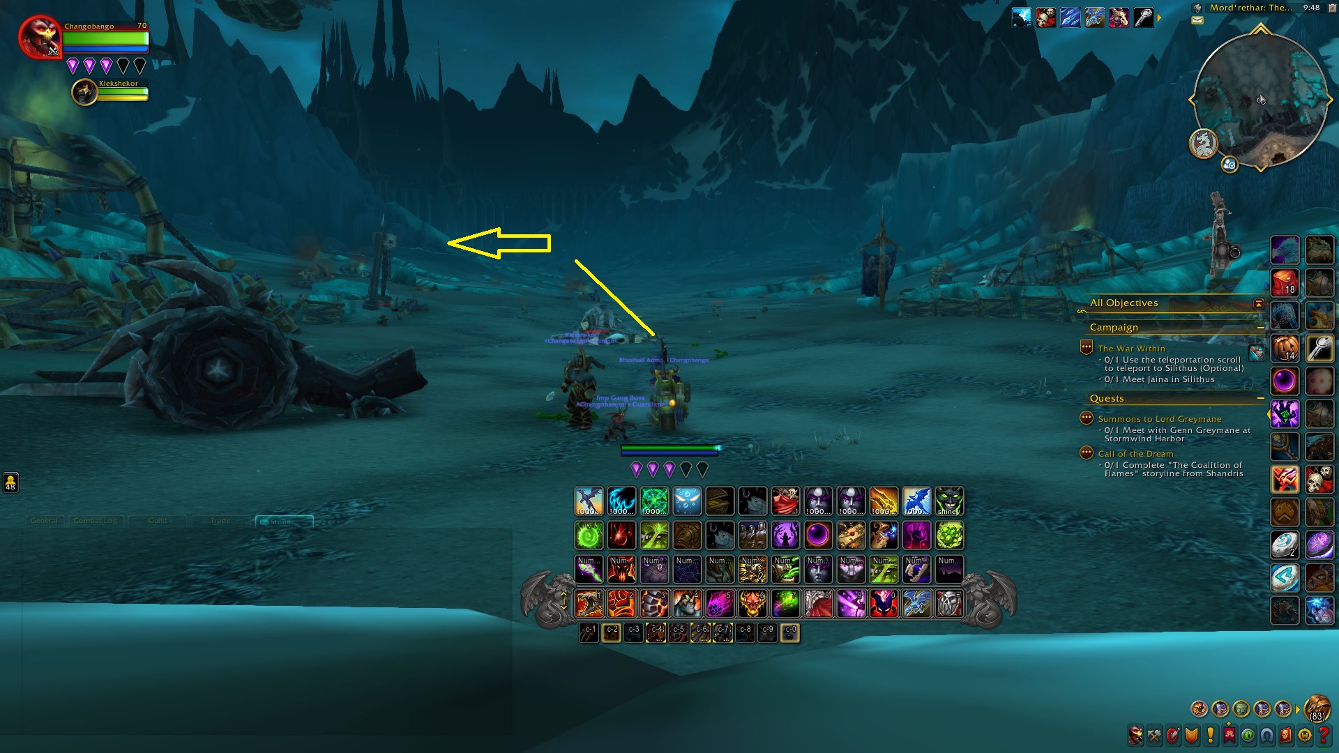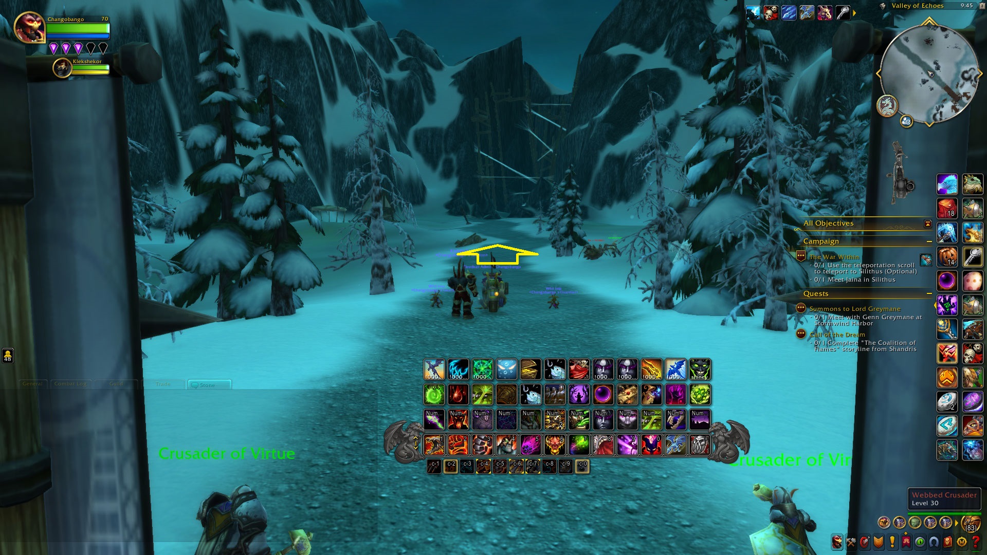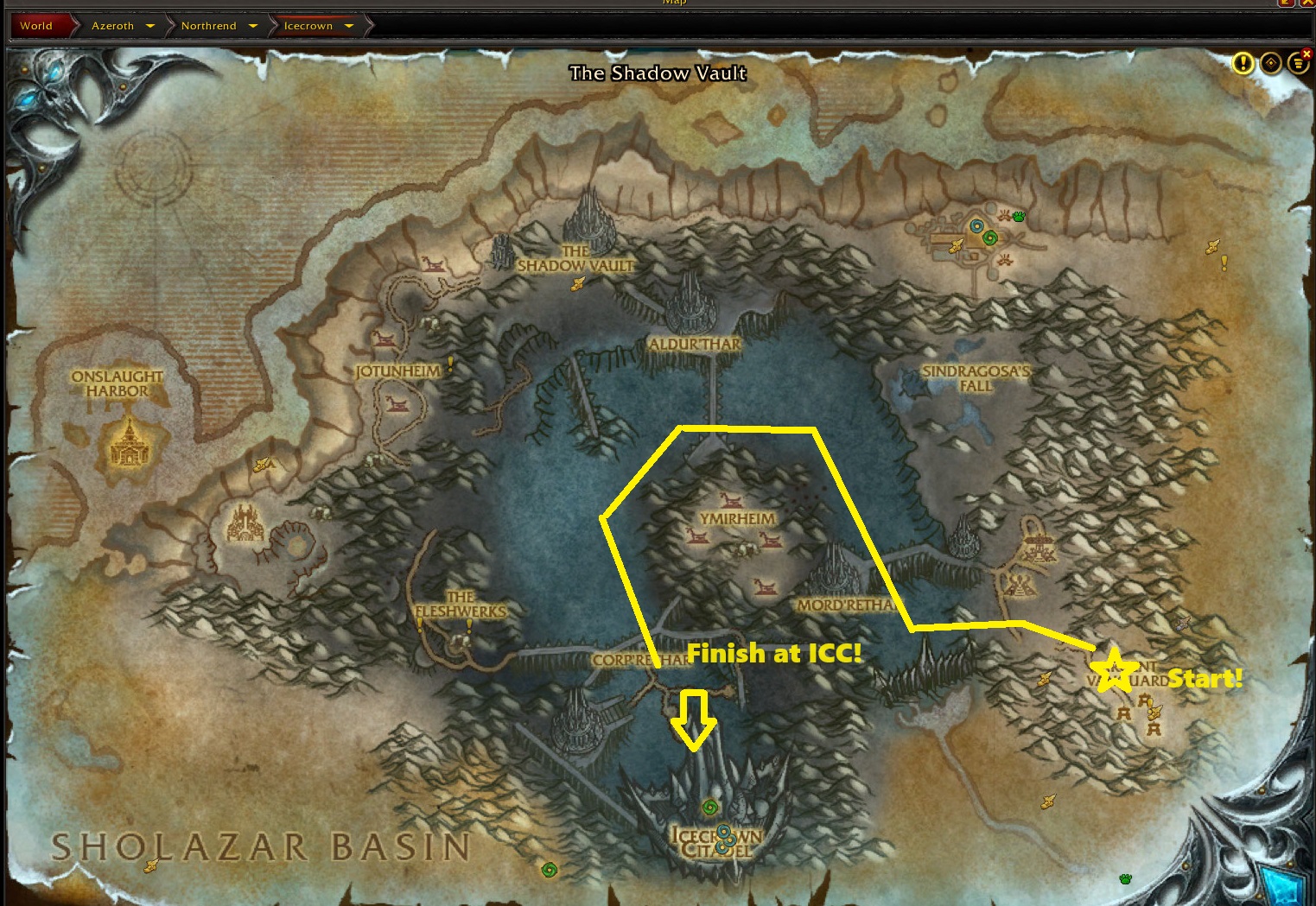 For this great race we will head up to Northrend by porting into Dalaran. From Dalaran to the start of the race we will all fly North East to the Argent Vanguard just past the bridge. I marked it in yellow on the map below.