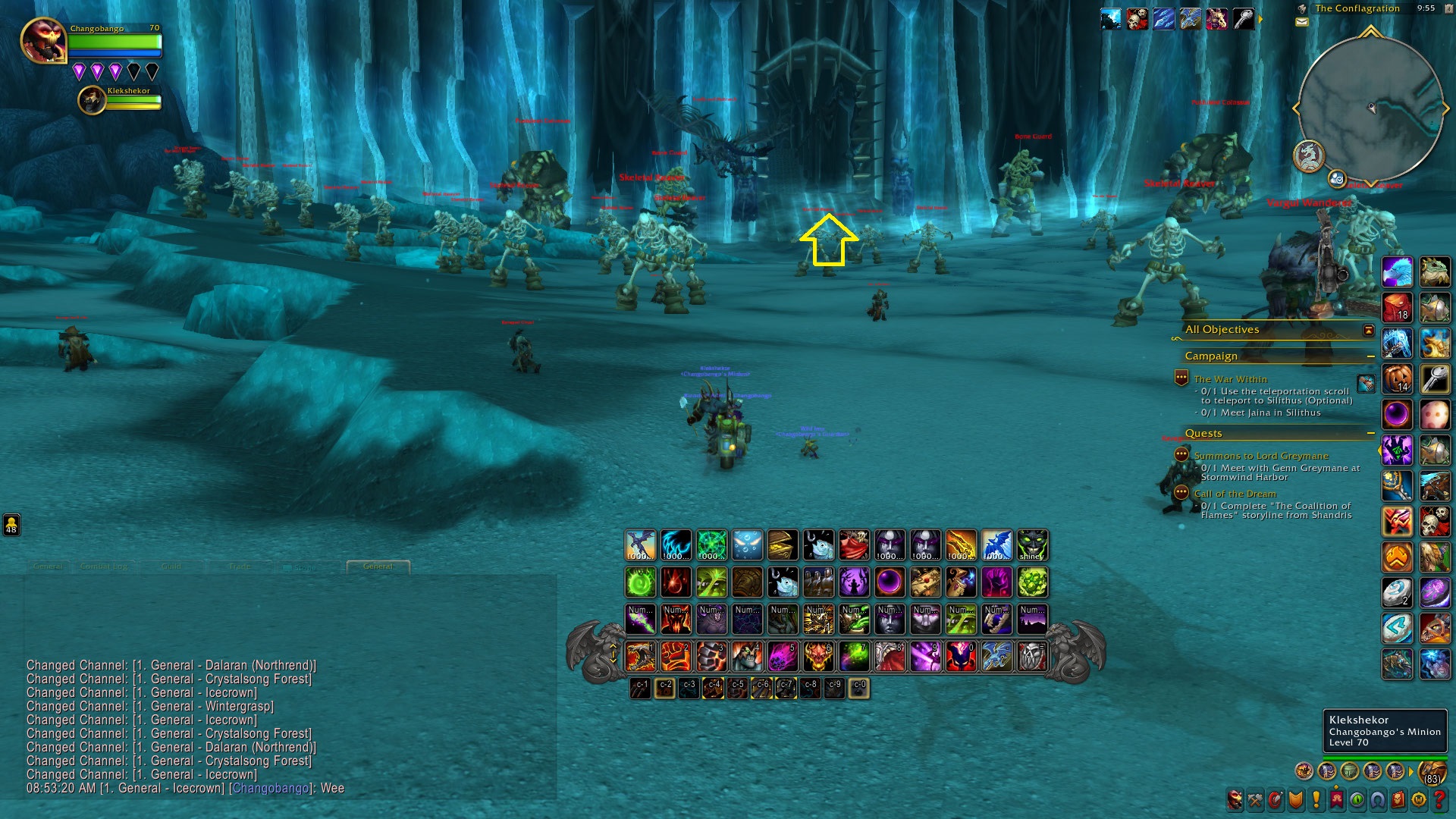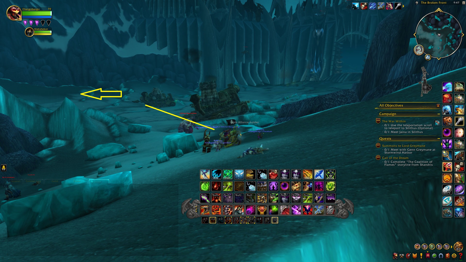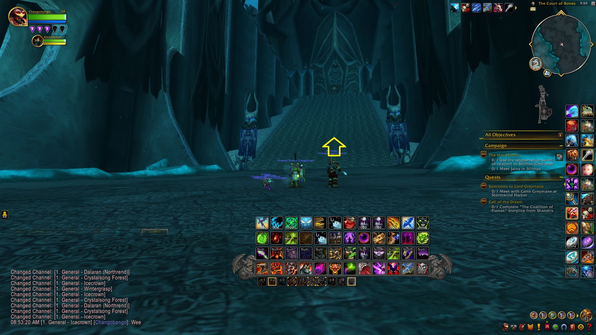 For this great race we will head up to Northrend by porting into Dalaran. From Dalaran to the start of the race we will all fly North East to the Argent Vanguard just past the bridge. I marked it in yellow on the map below.